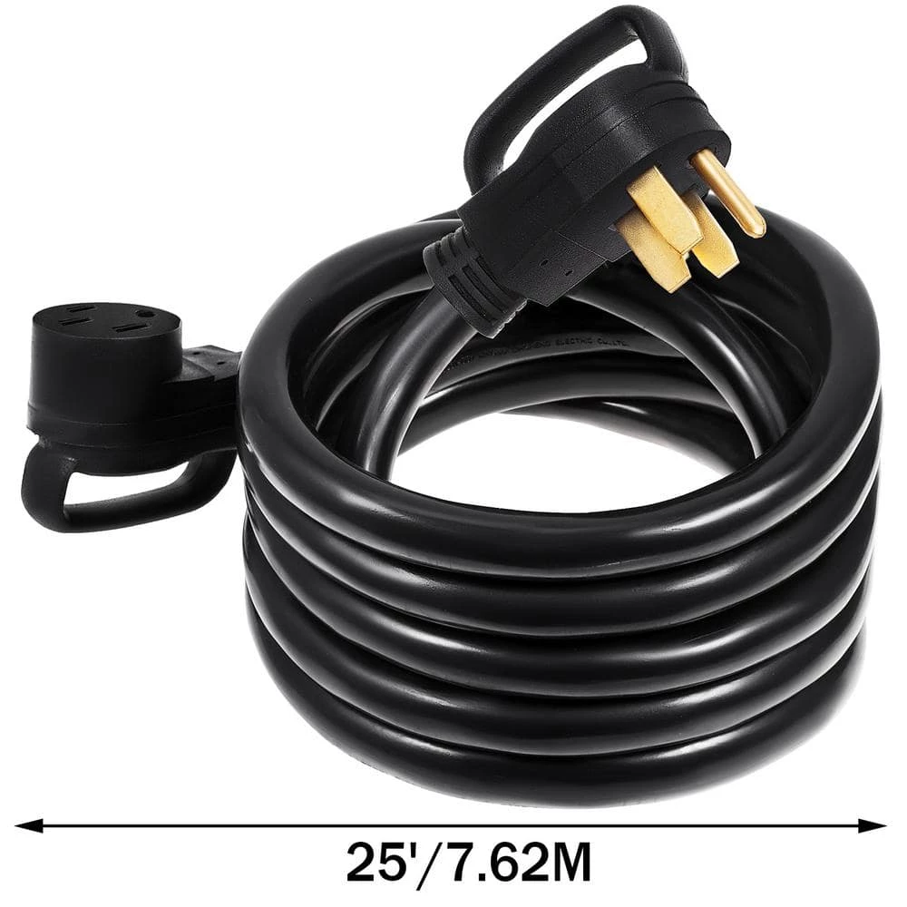 - Specifications:Cable Length: 25 FT.,Plug Type: N14-50,Wire Gauge: STW 6AWG/3C+8AWG/1C,Rated Voltage: 125 to 250-Volt,Rated Current: 50 Amp,Operating Temperature: -40°F to 90°F,Package size: 15.7 in. L x 15.7 in. W x 5.1 in. H,Gross weight: 19.0 lbs.
